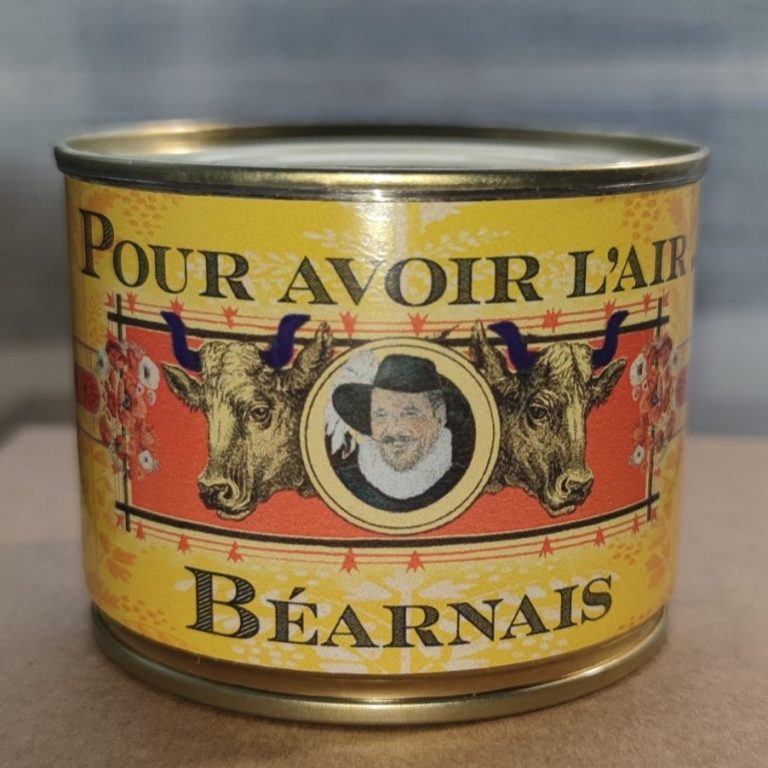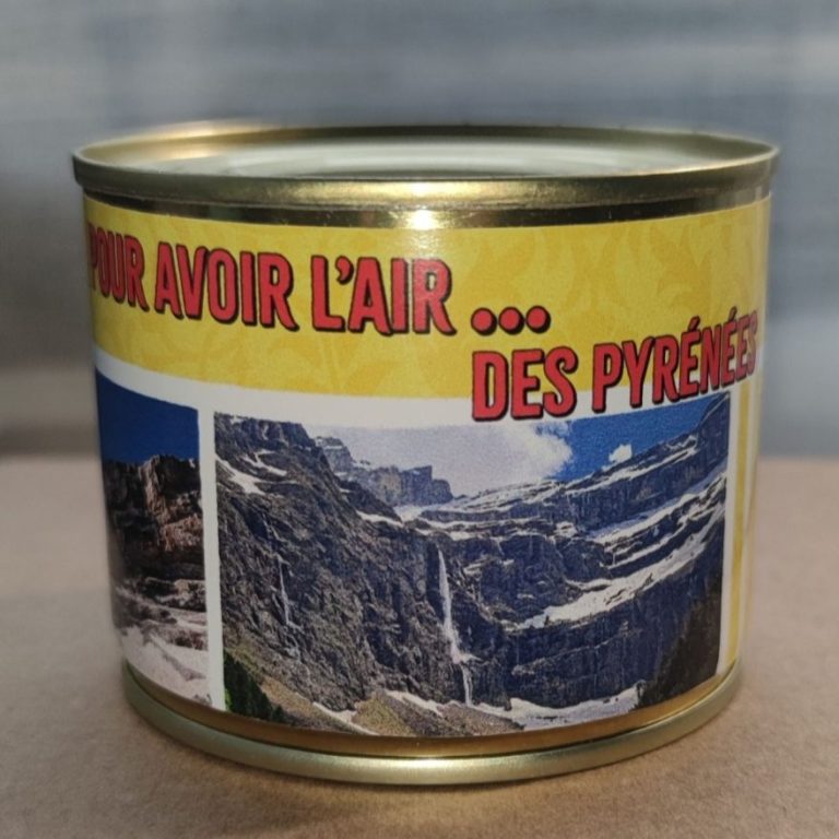 Bien plus qu'une simple boite, c'est un concentré d'identité, d'humour et de fierté locale mis en conserve avec amour au pied du Pic du Midi d'Ossau, là ou souffle l’âme de notre région. A l'intérieur ? Un souffle d'air pur , une bouffée d'humour: fermez les yeux et laissez-vous envahir par l'écho des cloches des vaches en estives, l'odeur des foins et la saveur du fromage de brebis...